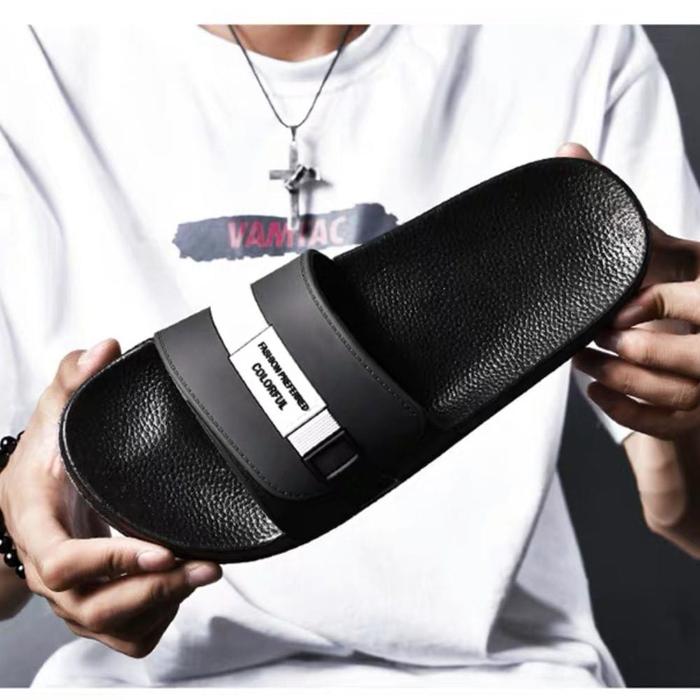 TERLARIS SANDAL SELOP FULL KARET MOTIF GESPER BEST SELLER SHOES PRIA HITAM 38