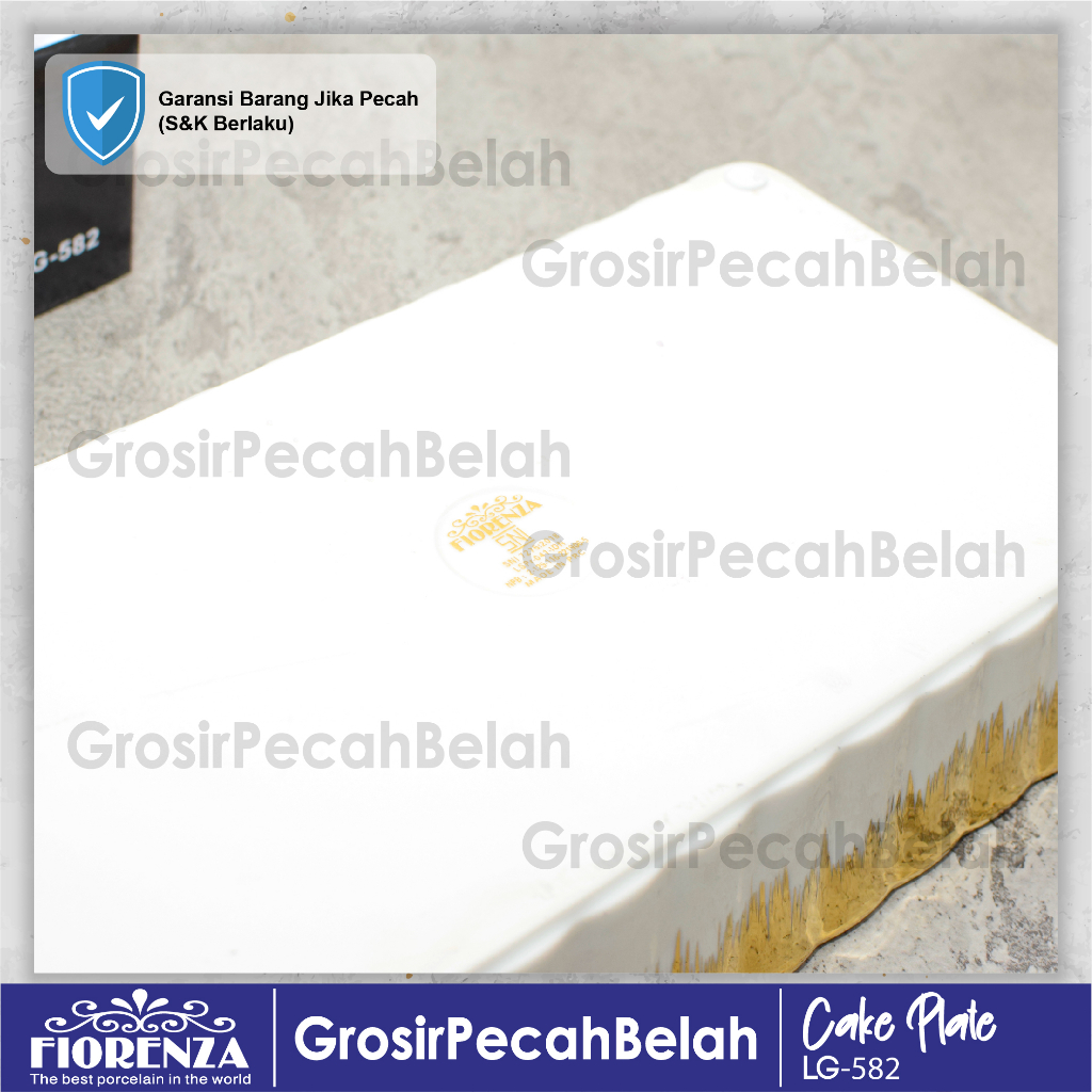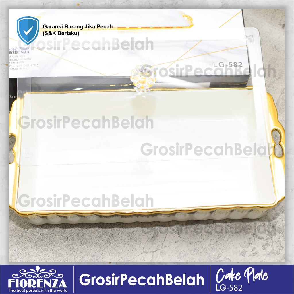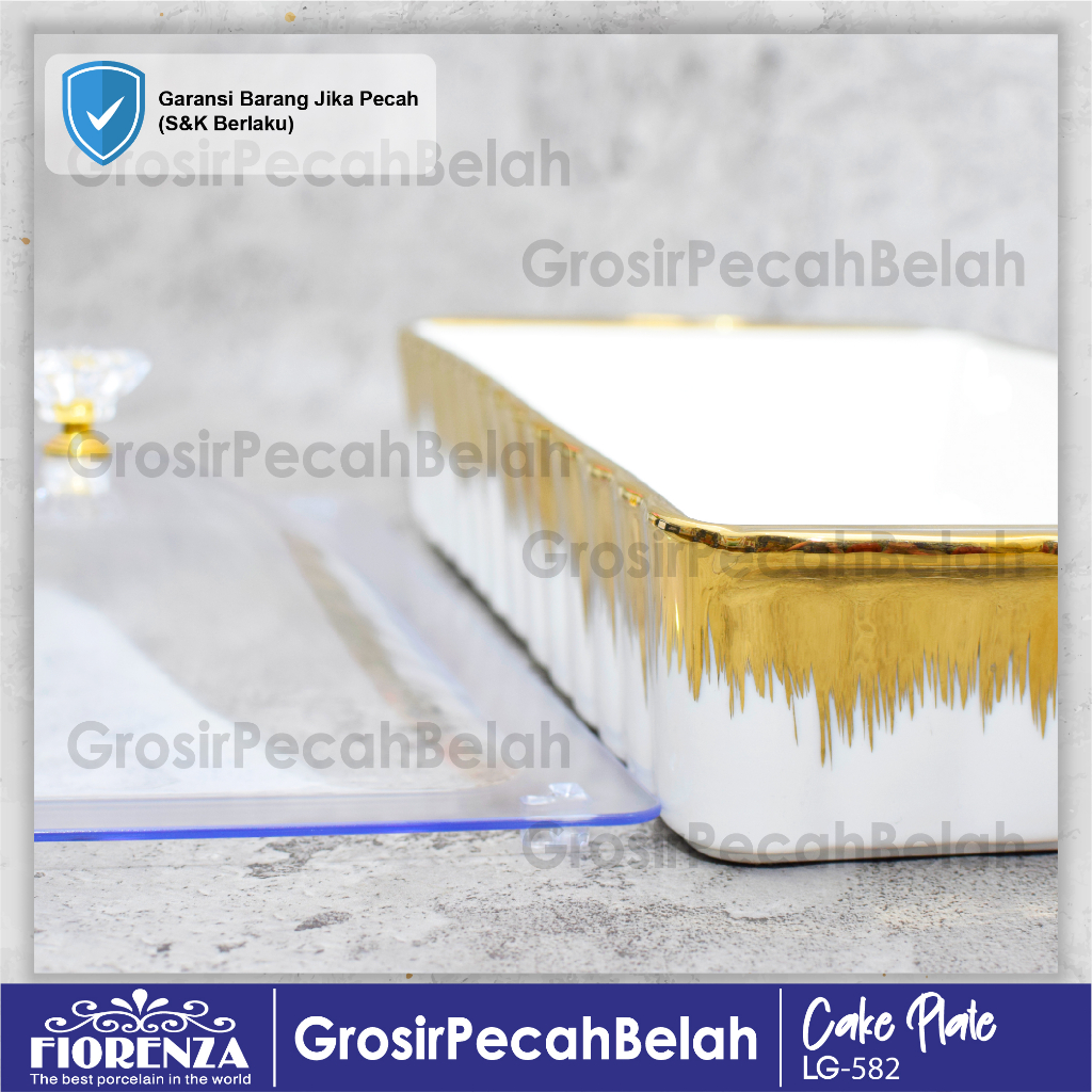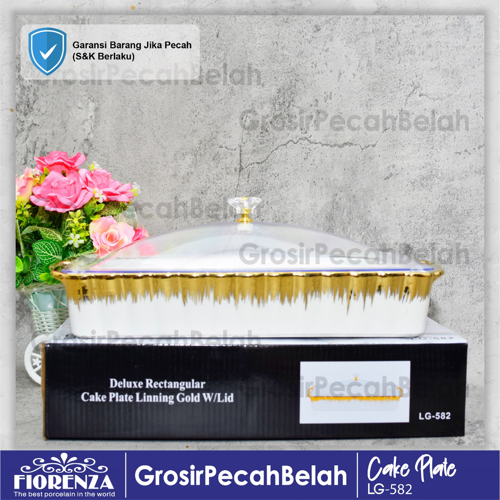 Tempat Wadah Kue Persegi Panjang Keramik Motif Gold Fiorenza LG-582