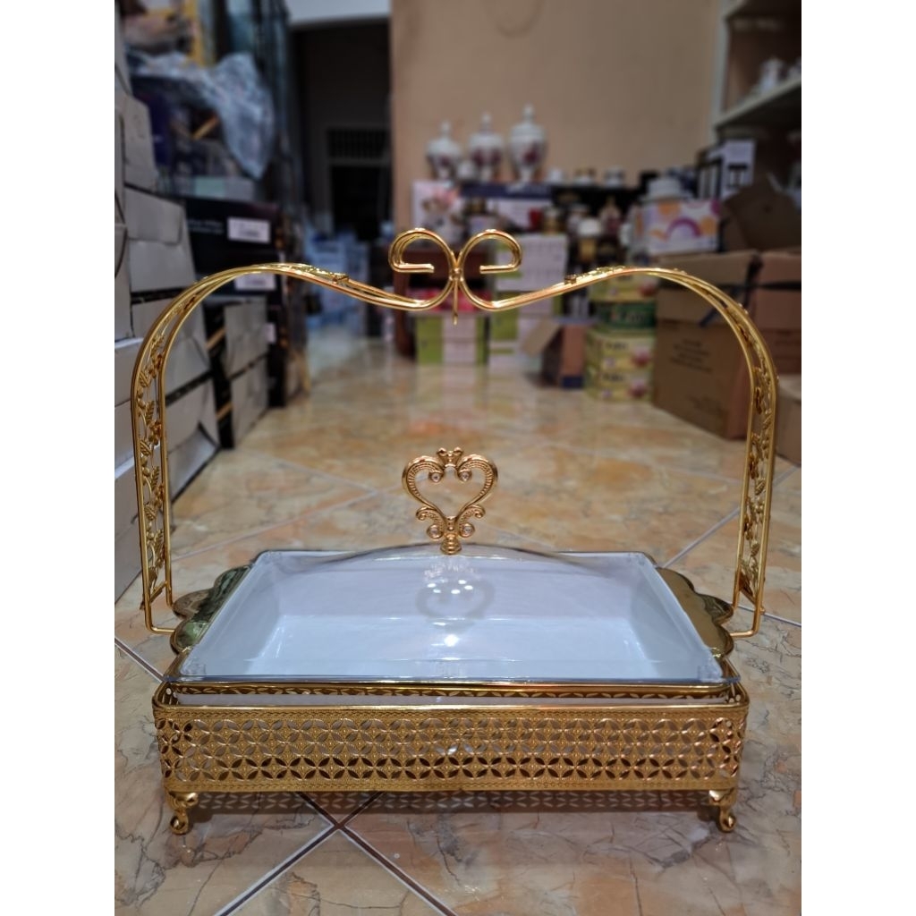 Tempat Wadah Kue Roti Sultan Keramik Gold Dengan Pegangan