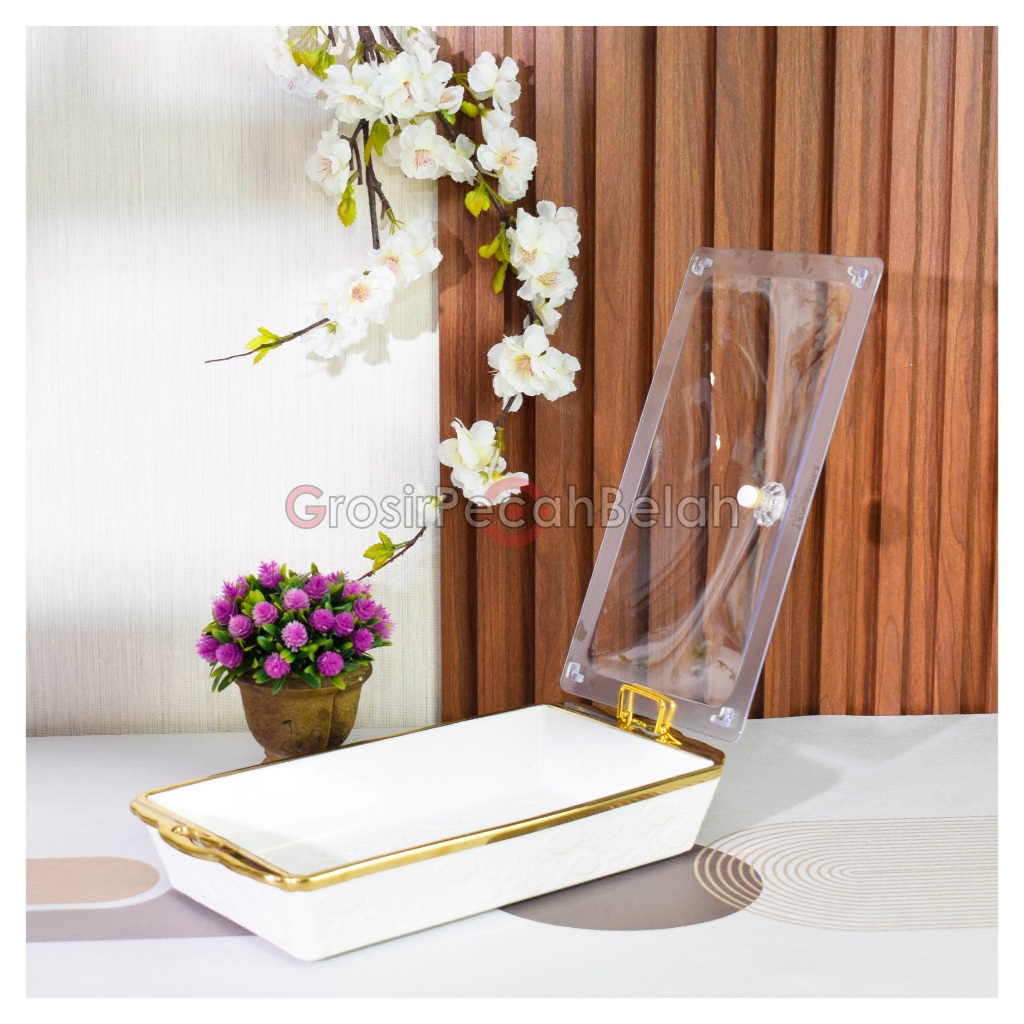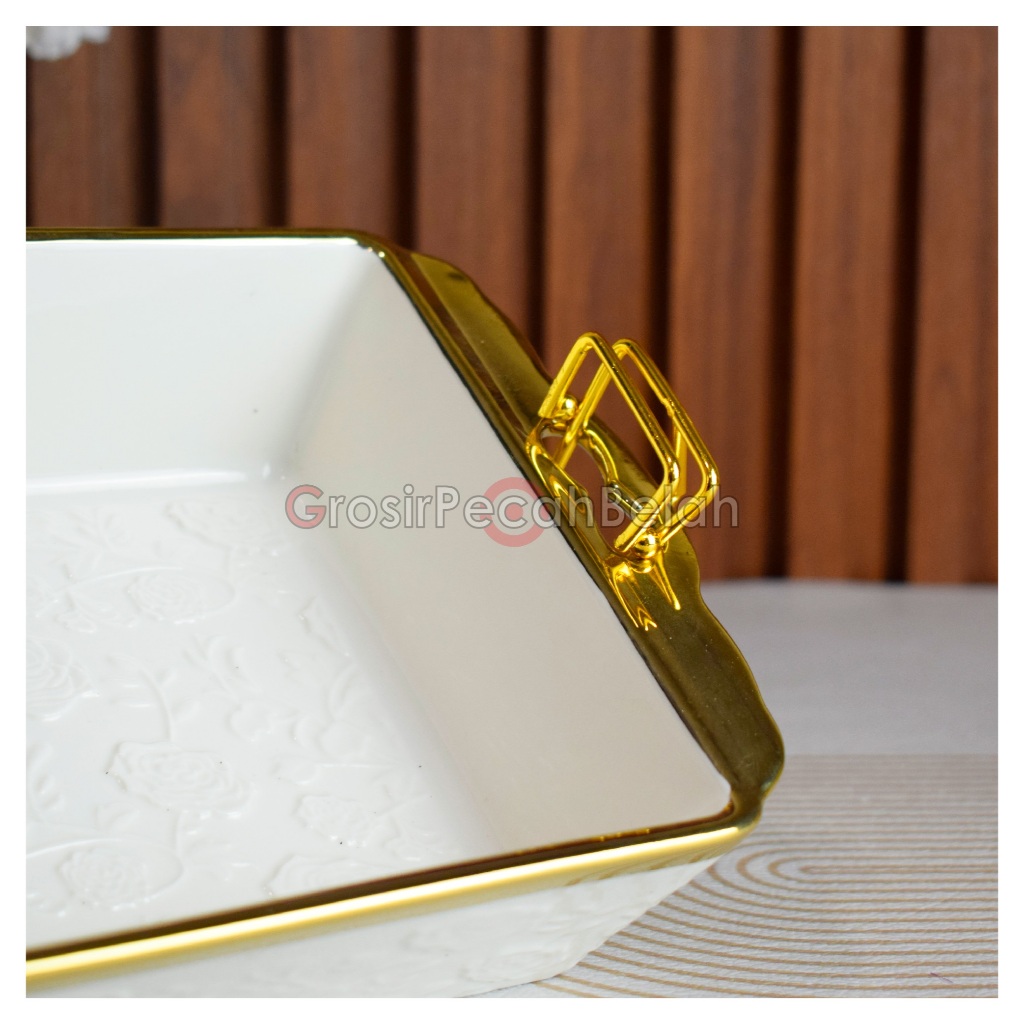 Tempat Wadah Kue Persegi Panjang Keramik Motif Linning Gold Fiorenza LGM-582