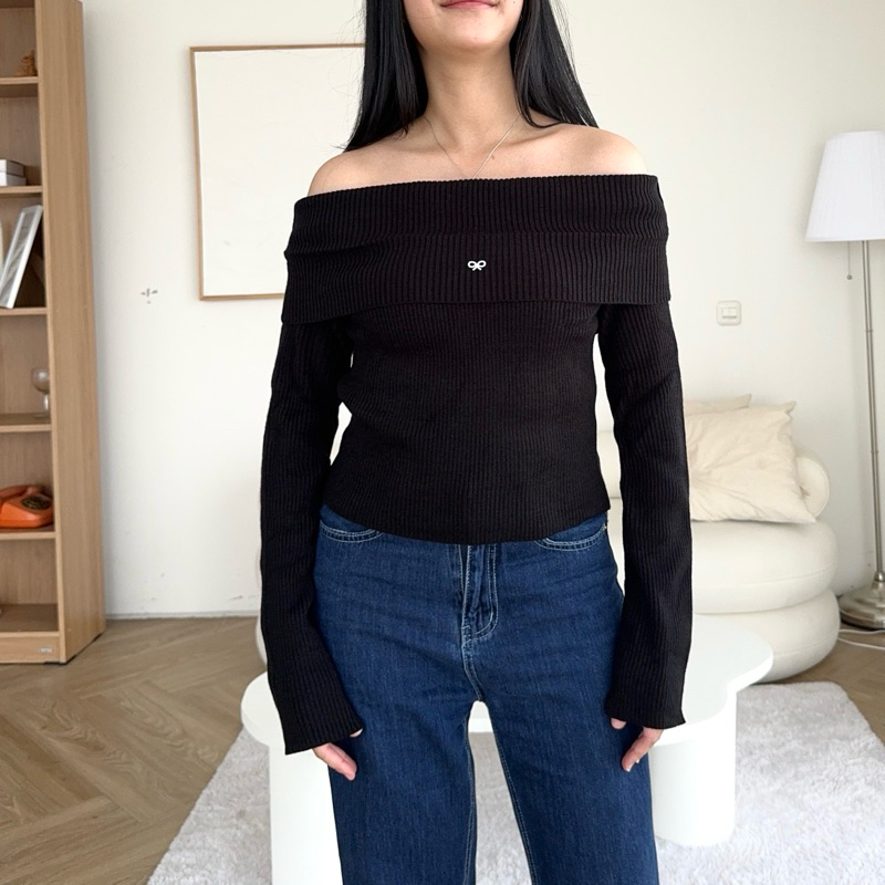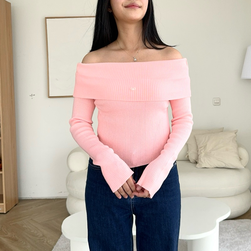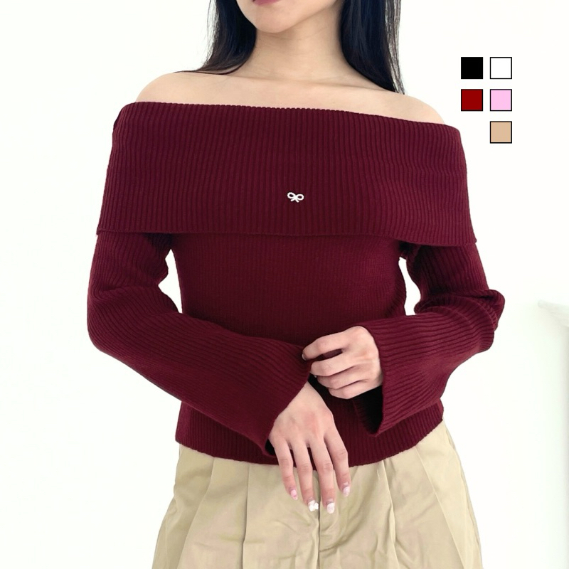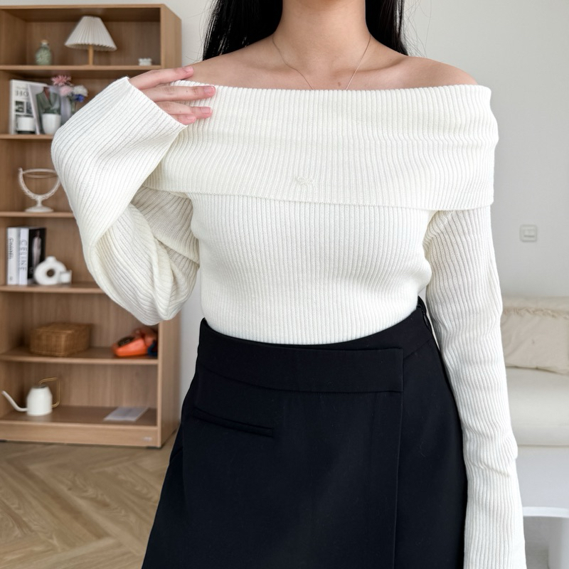 Needaknit Kyo Atasan Wanita Lengan Panjang Kekinian Korean Style Sabrina Off Shoulder Baju Knit