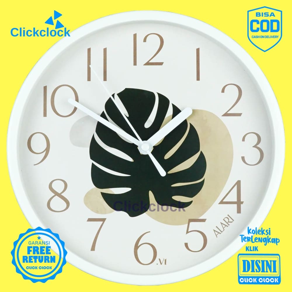 Jam Dinding Quartz Alari Indoor Leaf Bunga Flower Janda Bolong AL1176-1668 Besar