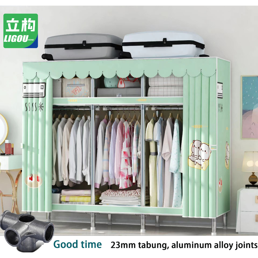 【23MM Tube】Lemari Kain Pakaian Lemari Baju Gantung Sederhana Lemari Pakaian Kain Pipa Baja Tebal
