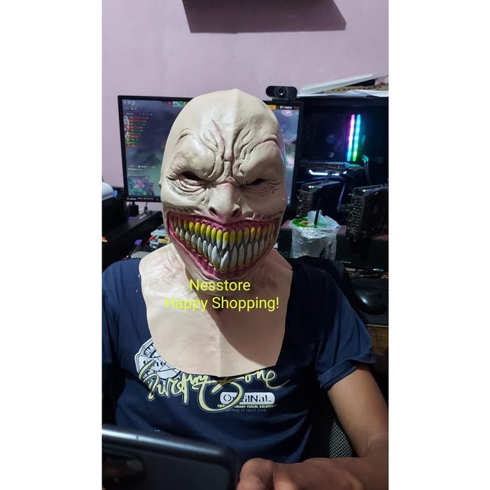 Topeng Monster HeadGear Zombie Pointy Teeth Split Mouth Halloween