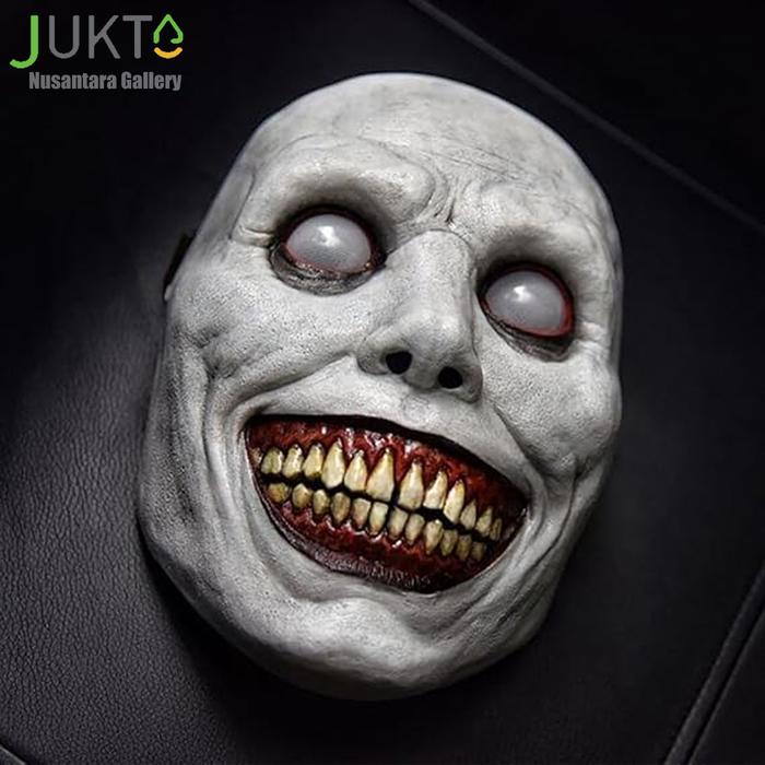 JUKTA Topeng Setan Mata Putih Tersenyum Horor Pengusir Setan COS halloween rumah hantu prank party