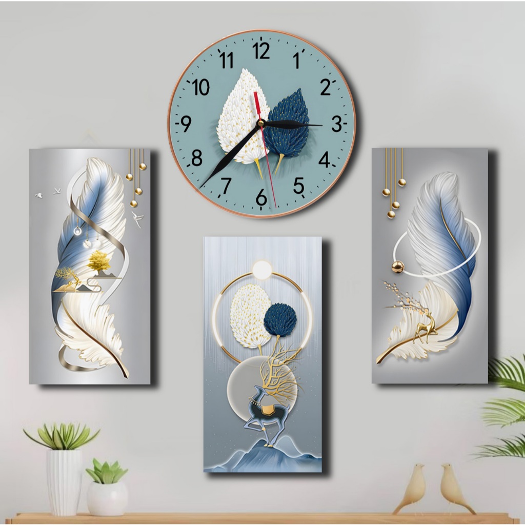 Jam Dinding 3D Tema Feather Lampu Hiasan Estetik R Tamu Dekor Minimalis