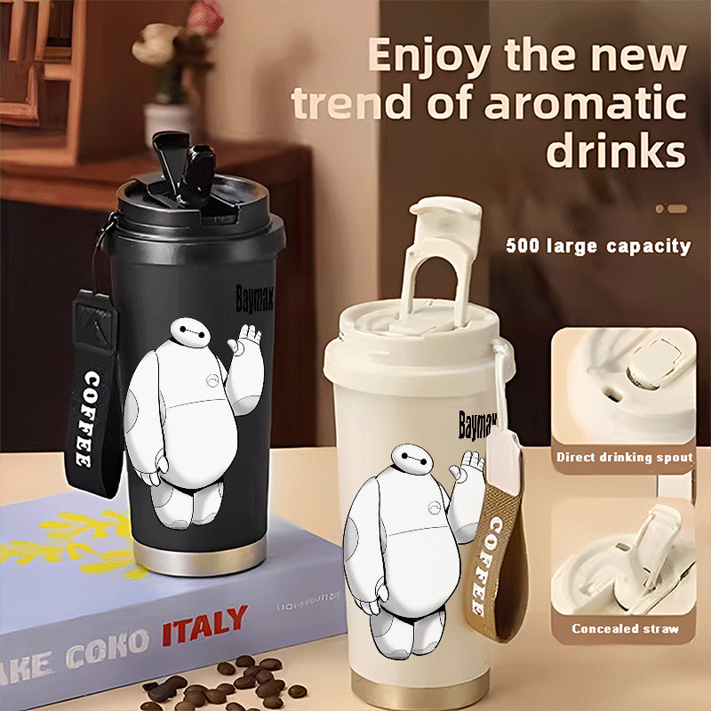 Tumbler Big Hero 6 Baymax 500ml Stainless Steel 316 Portable Botol Minum Simple Stylish & Aesthetic Dengan Sedotan CUPL