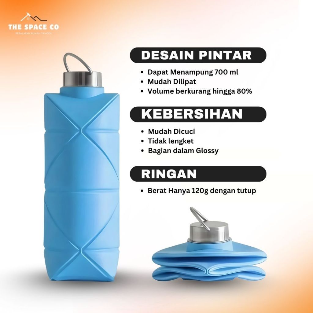 Botol Air Minum Lipat 700ml Silikon Bebas BPA Tempat Minuman Portable Anti Bocor