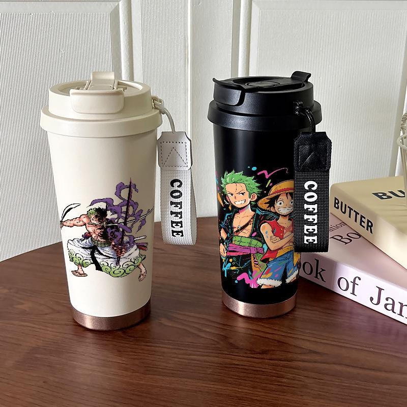 Tumbler One Piece Zoro Luffy CUP 500 ML Cartoon Termos Kopi Stainless Steel Dengan Sedotan Termos Kopi Yang Elegan