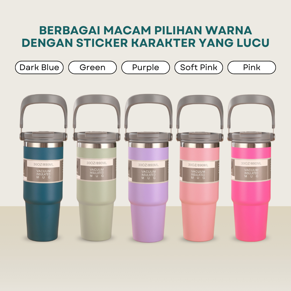 FUNNYCOOK Tumbler Botol Minum Portable Stainless 890ml Thermos Cup Vacuum Insulated