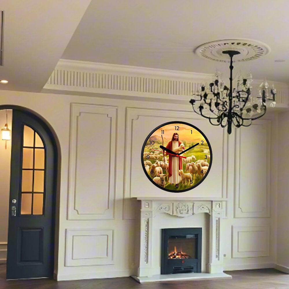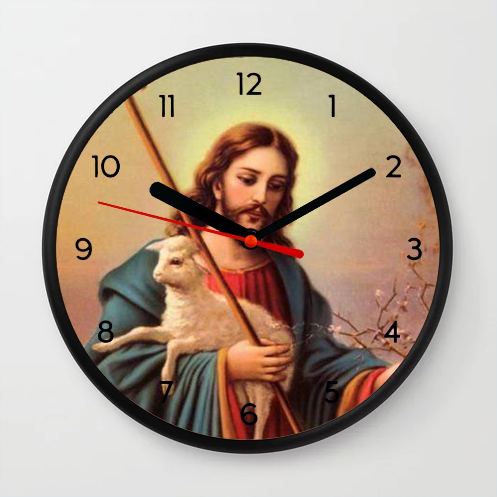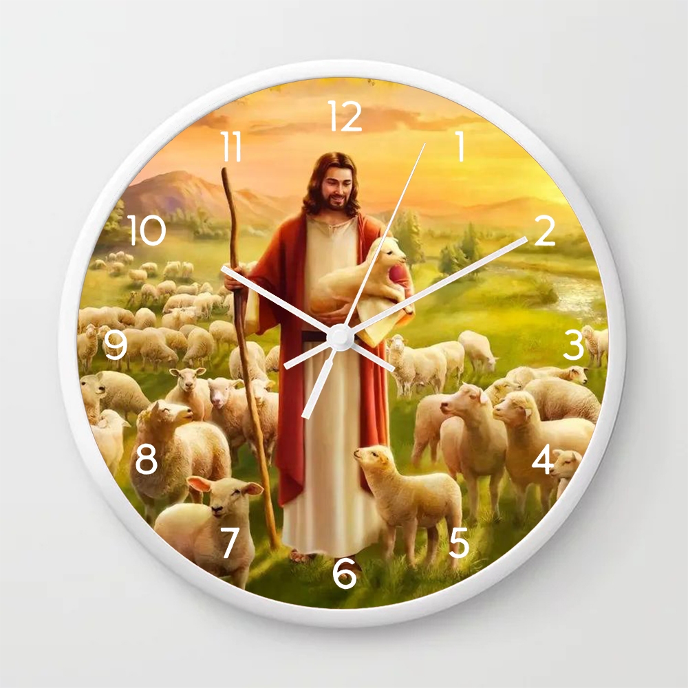 jam dinding tema kristen yesus menggembalakan domba Jam bulat 8 inch Sesuai untuk penggunaan rumah