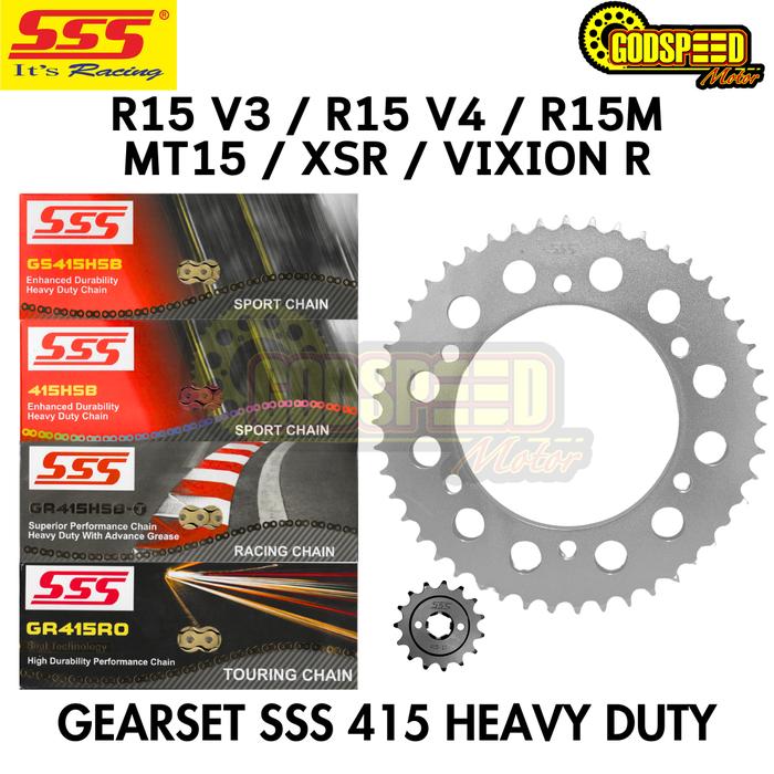 TERLARIS GEARSET SSS 415 R15 V3 V4 R15M VIXION R V3 XSR XSR155 YAMAHA RANTAI 130 HSBT RO HSB REGINA ORO GP4 GIRSET GIR SET GEAR SET SSS HSBT