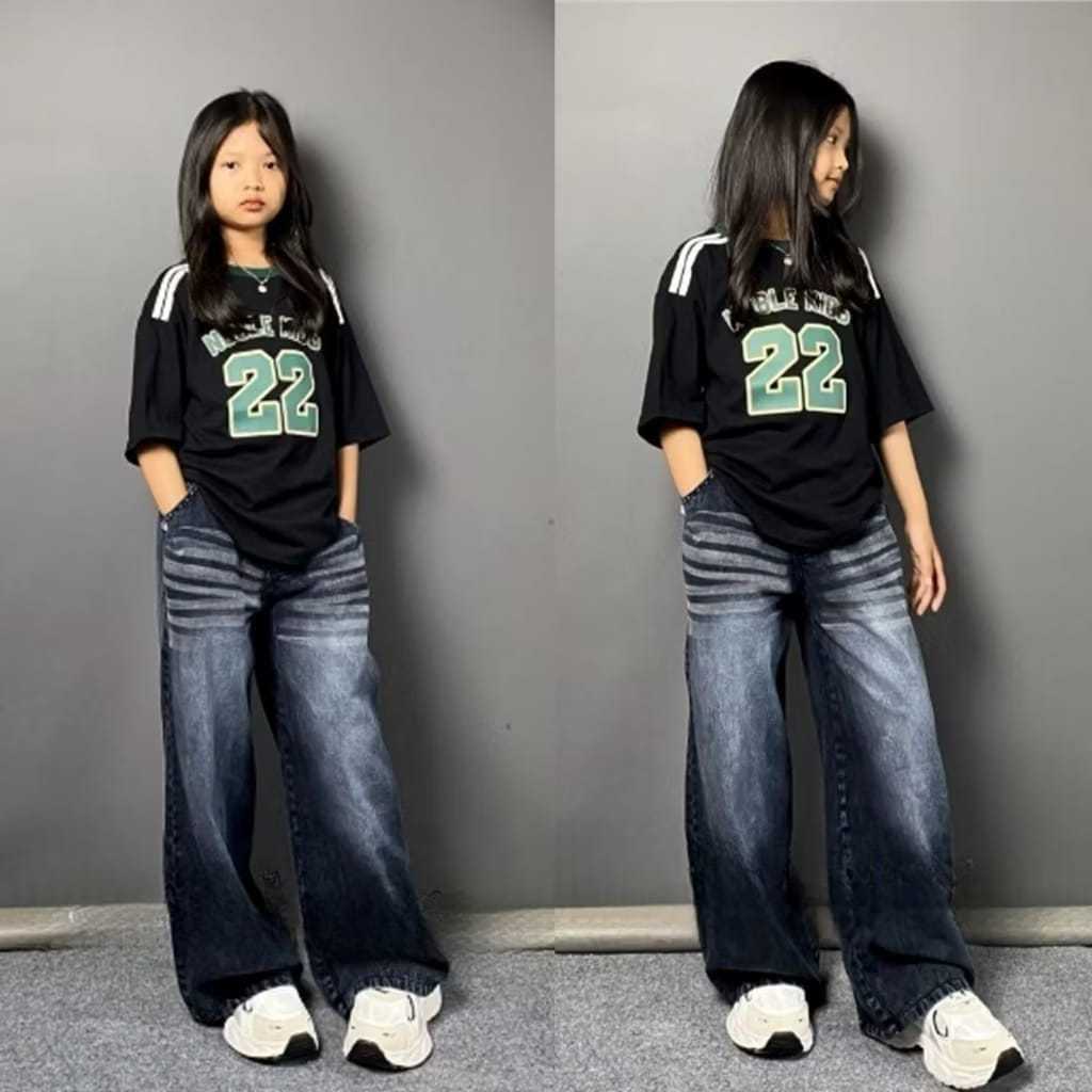 [Mall] Jeans Pinggang Karet - Celana Baggy Kulot Wisker Premium Anak Unisex Usia 8-14 Tahun Kekinian