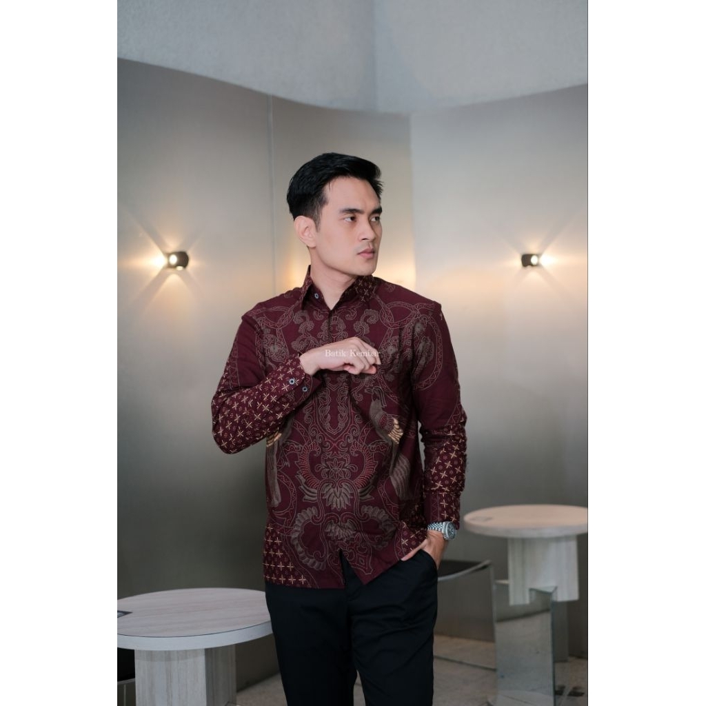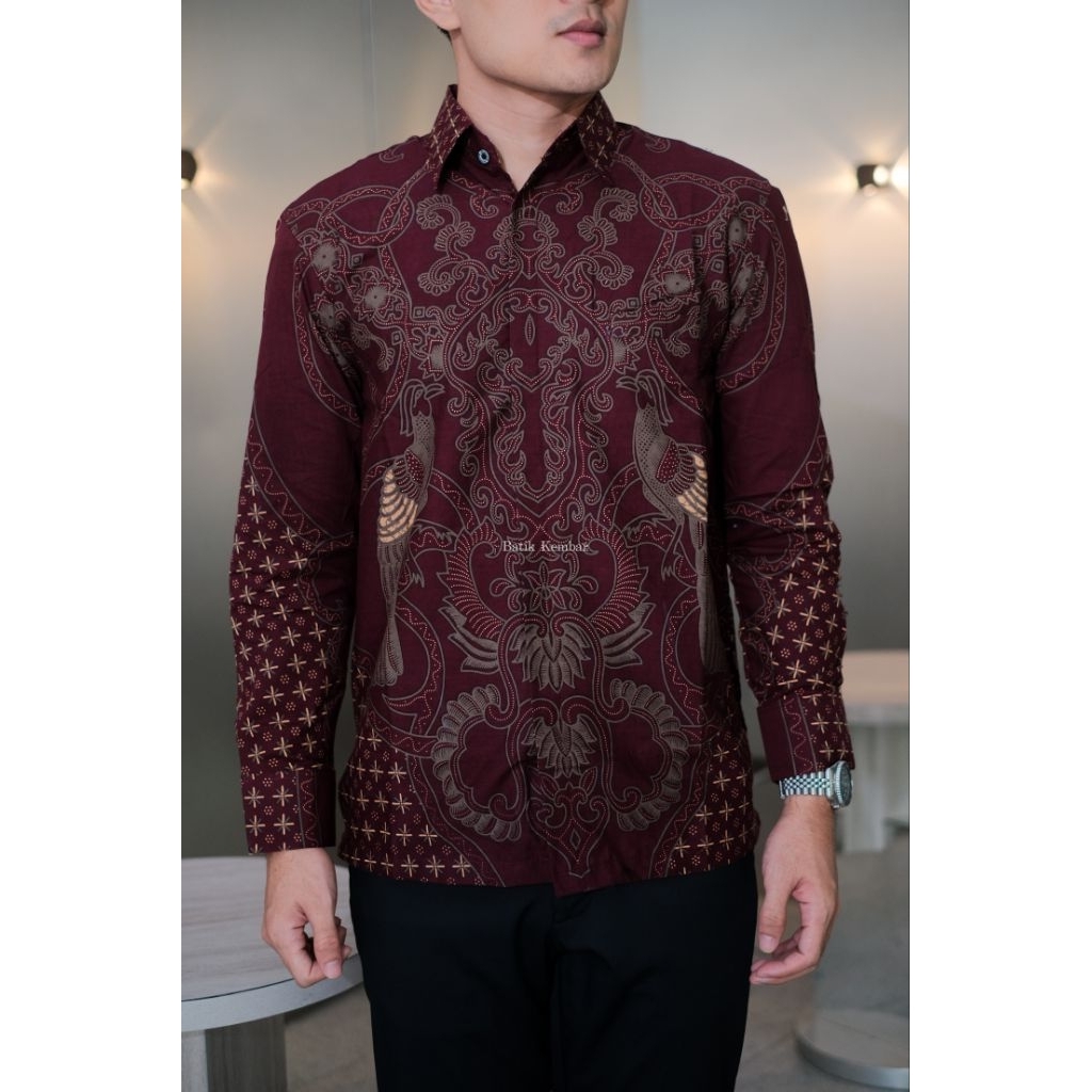 MOTIF KENARI MERAH Reguler Lengan Panjang Baju Batik Pria Kain Katun Premium Lapisan Furing