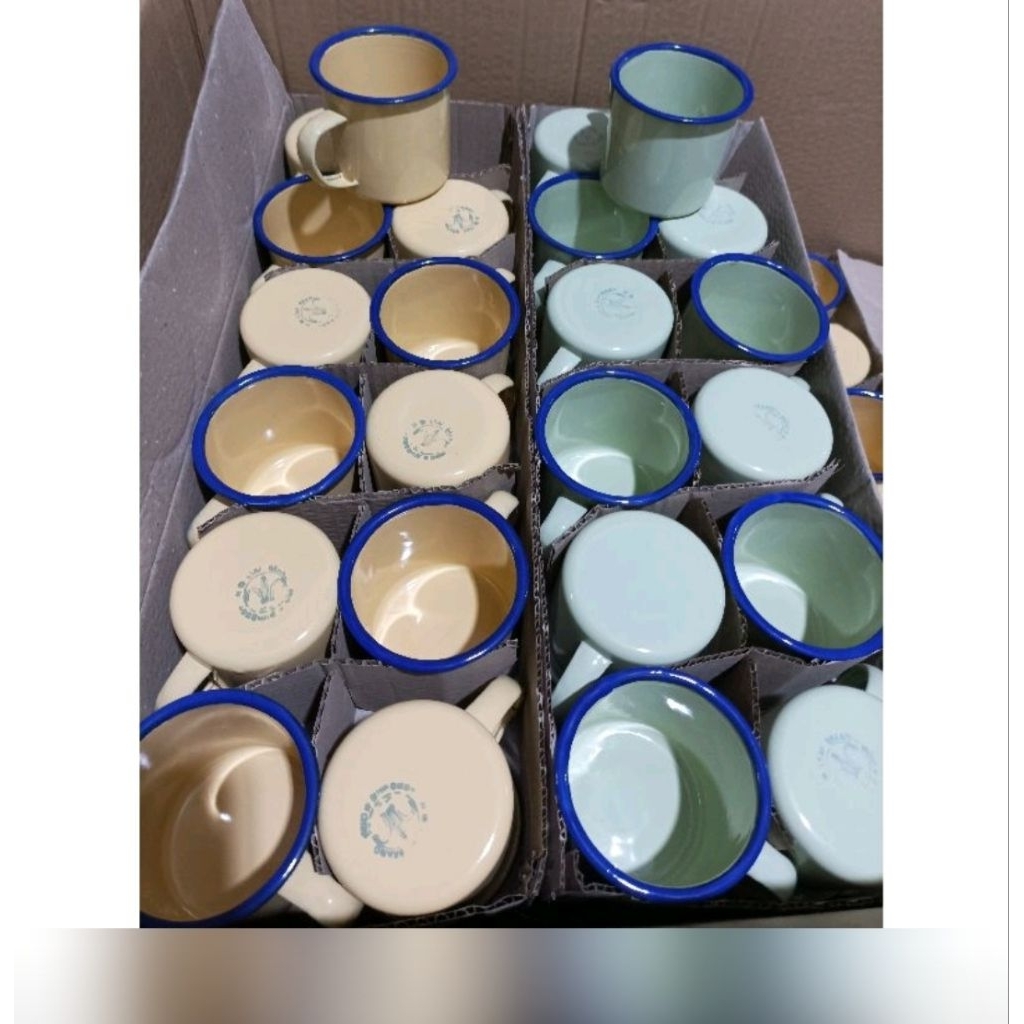 mug enamel burik lurik polos coklat hijau 7 cm/ mug jadul 1 lusin ( 12 pcs)