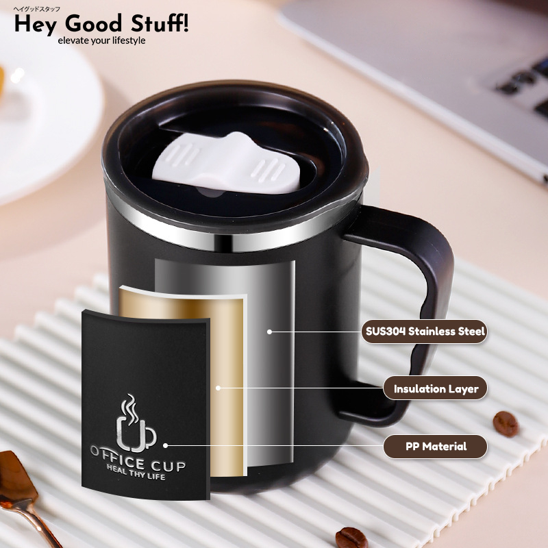 MUG GELAS KOPI ATAU TEH AESTHETIC STAINLESS STEEL 304 ANTI TUMPAH 500ML