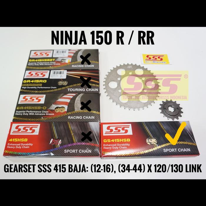 TERLARIS GEARSET SSS 415 KAWASAKI NINJA 150 R RR SS RANTAI SSS HSB GIRSET GIR SET GEAR SET