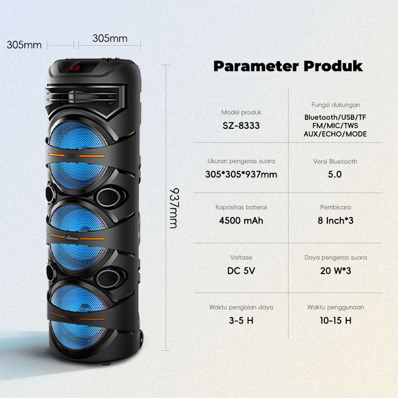 Speaker Bluetooth Karaoke 8 Inch 3 Portabel 2 Mic bass besar Wireless subwoofer ZQS8333