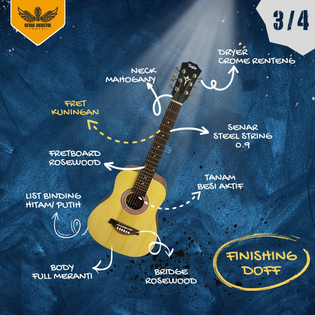 Gitar Akustik Tylor 3/4 Custom / Gitar Pemula Tanam Besi Murah Tanpa Dp Gratis Ongkir