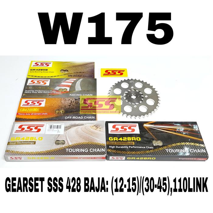 TERLARIS GEARSET SSS 428 BAJA W175 RANTAI SSS SB HSBT HMX LO RO REGINA ORO RH2 ZRT ZRING GIRSET GIR SET GEAR SET HSBT