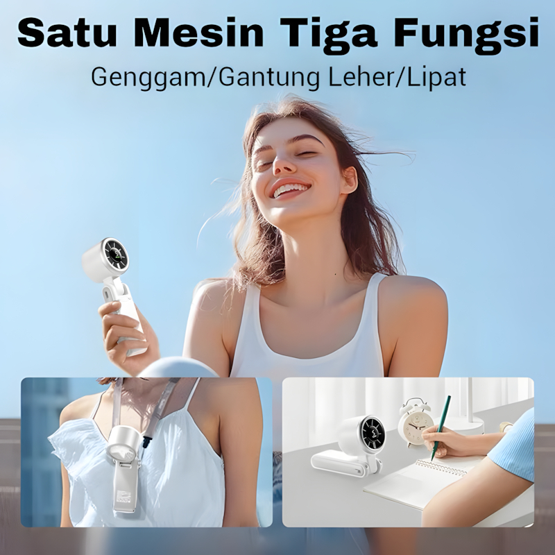 Kipas Mini Tangan Portabel Turbo Daya Besar - Bisa Digantung di Leher , Strong 24H Kipas Turbo Angin Ultra Senyap