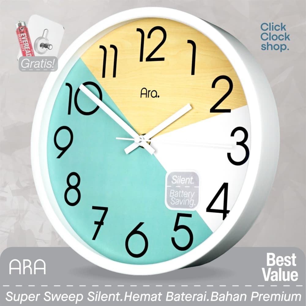 Jam Dinding Analog ARA Minimalis Sweep Minimalis Abu ARA AR1210-168 Besar Dekorasi Kamar Murah