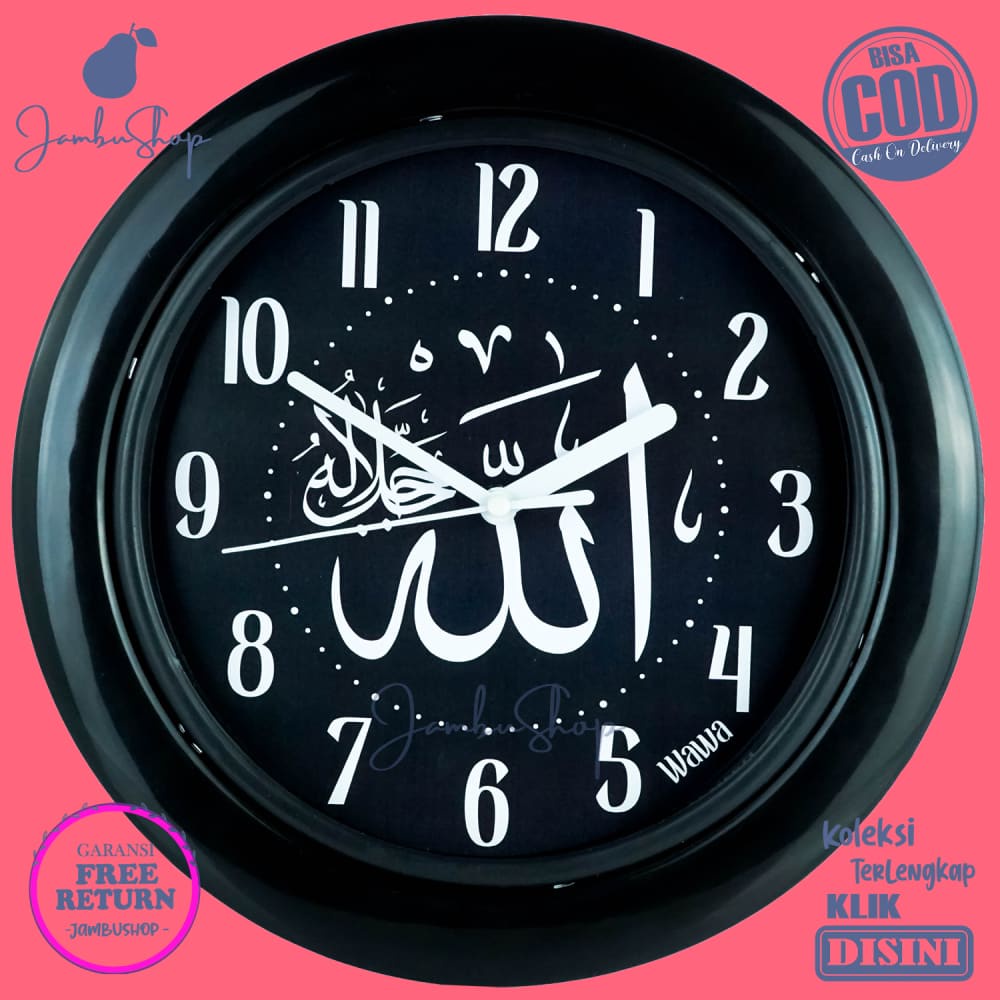 Jam Dinding Analog Kaligrafi Islam Hitam Wawa WW1168 Dekorasi Kamar BestSeller
