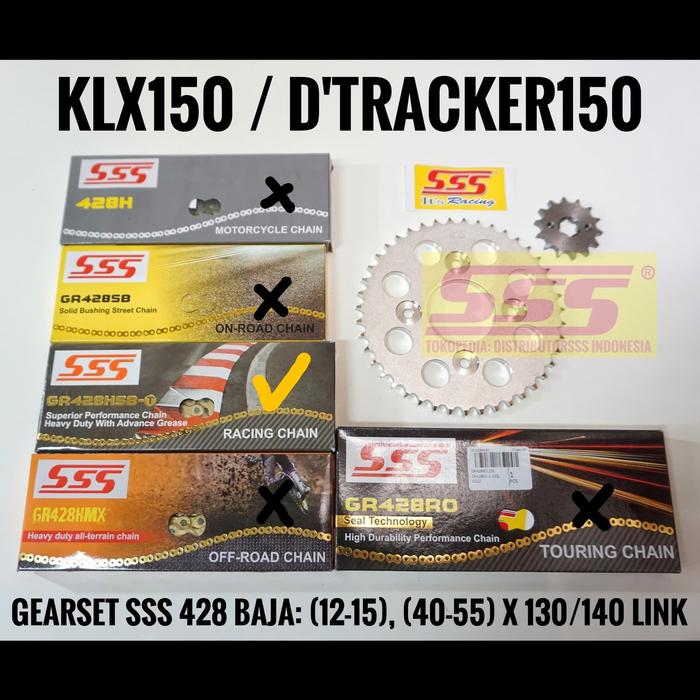TERLARIS GIRSET SSS KLX150 D'TRACKER DTRACKER 428 BAJA RANTAI SSS HSBT REGINA ORO RH2 ZRT SSS HSBT
