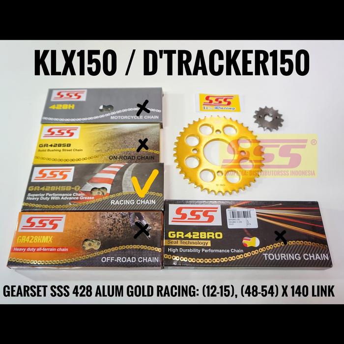 TERLARIS GEARSET SSS 428 ALUMINIUM KLX150 DTRACKER 150 RANTAI SSS HSBT REGINA ORO RH2 ZRT ZRING GIRSET GIR SET GEAR SET SSS HSBT