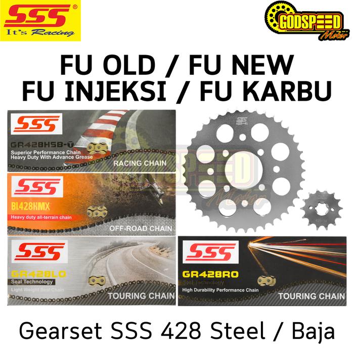 TERLARIS GIRSET SSS SUZUKI SATRIA FU OLD NEW FACELIFT FI INJEKSI SSS BAJA 428 RANTAI SSS HSBT REGINA ORO RH2 ZRT ZRING SSS HSBT