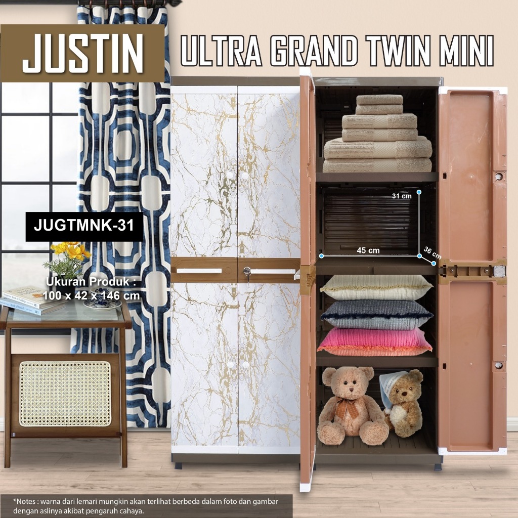CLUB Plastik Justin Ultra Grand Twin Mini - Lemari Plastik Pakain Printing - Lemari Plastik 4 Pintu