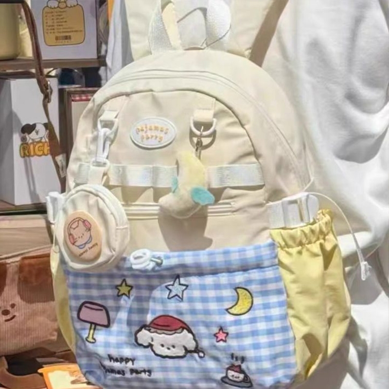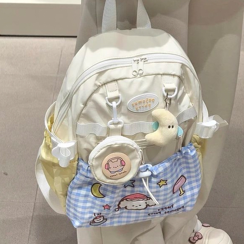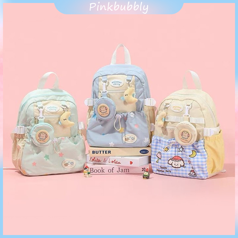 Pinkbubbly.【Widget Gratis】Tas Sekolah wanita lucu Anak Perempuan Tas Bahu Dopamin kuliah Lucu Y2k Tas Ransel Perjalanan