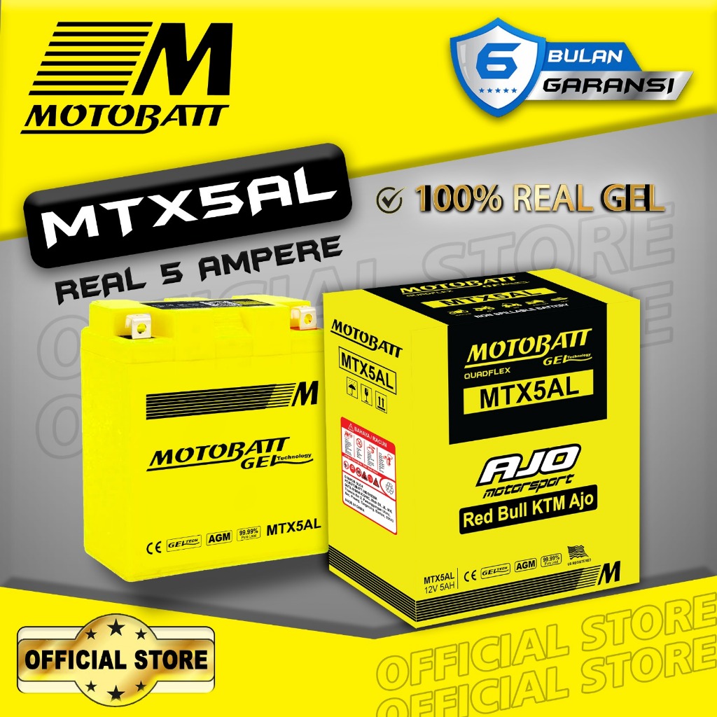 Aki Motor Motobatt Gel Mtx5al - 5ah (Garansi 6 Bulan) Aki Motor Beat Fi Vario 125 Mio Sporty Scoopy Beat Karbu