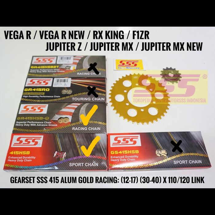 TERLARIS GEARSET SSS 415 RX KING FIZR JUPITER MX JUPITER Z VEGA R RANTAI HSBT REGINA GIRSET GIR SET GEAR SET SSS HSBT