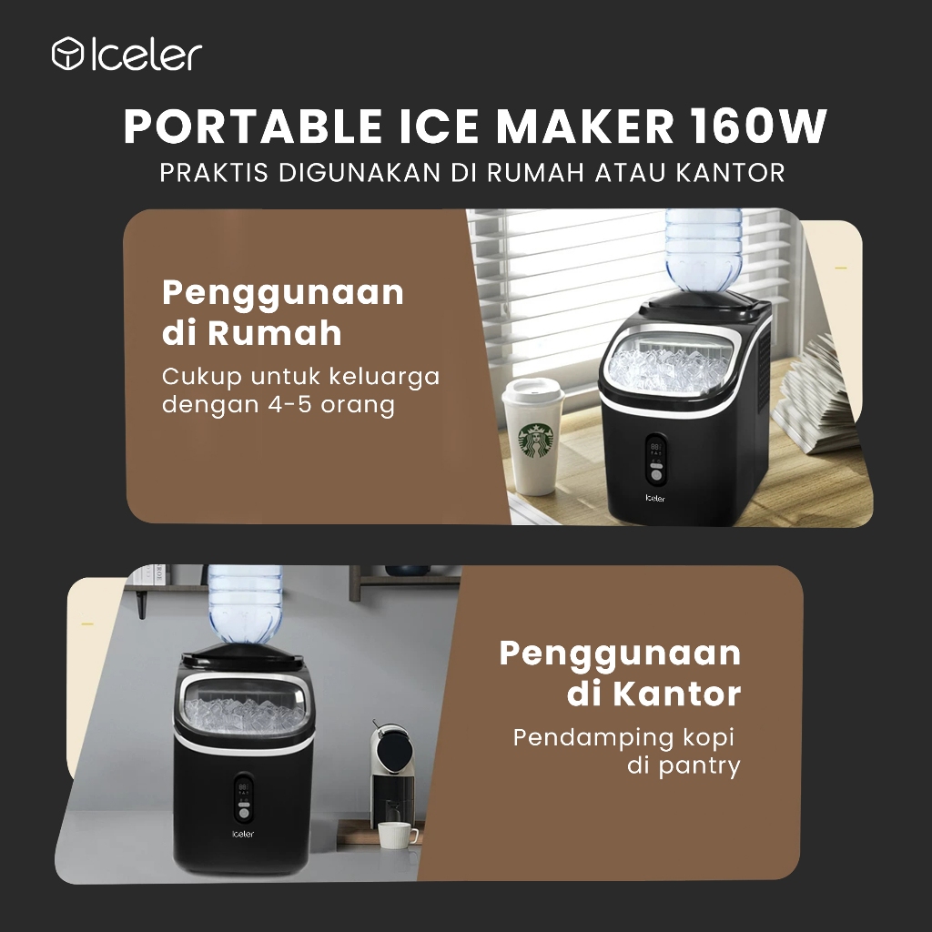 Iceler Mesin Es Cube Ice Maker 3 Pilihan Input Air 1015 Menit Es Jadi Setting Timer/ Atur Ketebalan Es/ Automatic Clean