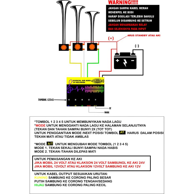 MODUL KLAKSON TELOLET 3 CORONG BASARI 25 NADA 10 TOMBOL UNIVERSAL 12V 24V(MODUL SAJA) PIALA DUNIA KILL BILL 3 CORONG