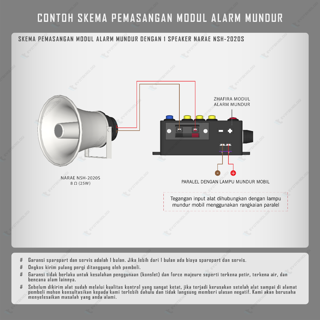 Evoteknologi Modul Klakson telolet basuri elektrik alarm mundur 12V 24V