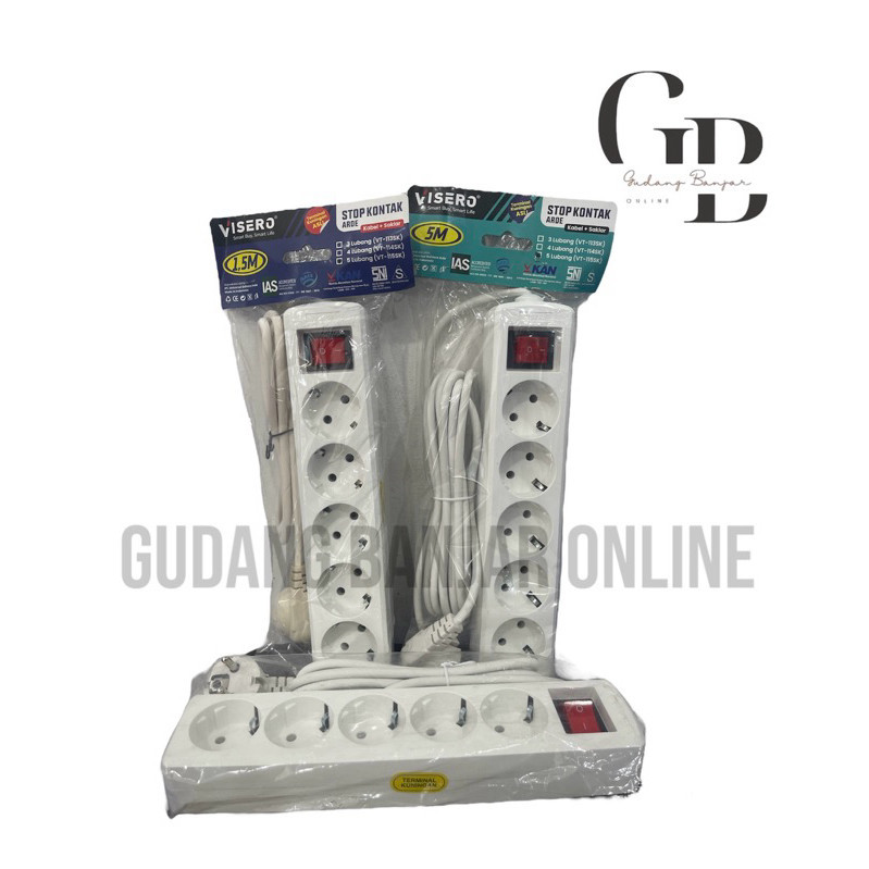 Stop kontak kabel + arde 3/5 dengan lubang 5 panjang 1.5/3/5meter kualitas bagus