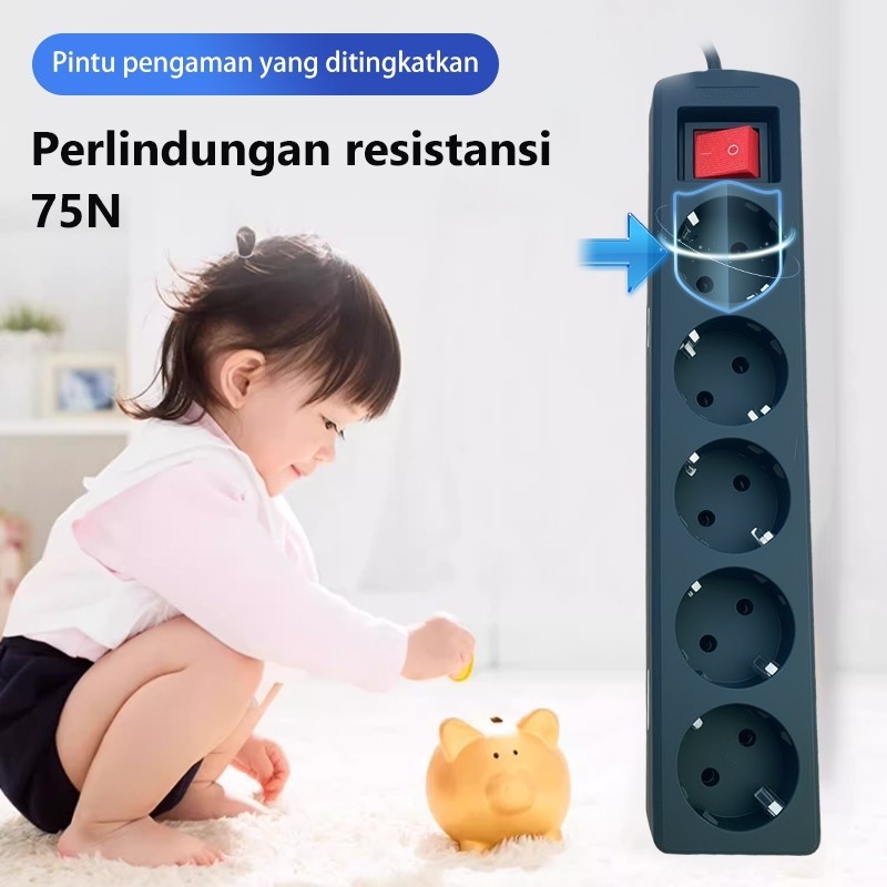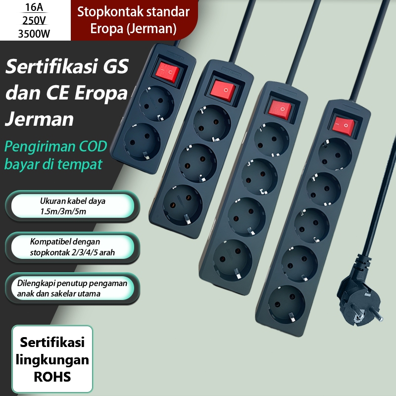 Stop Kontak Kabel 5 Meter 2/3/4/5 Lubang Stop Kontak Listrik Kuningan SNl Saklar