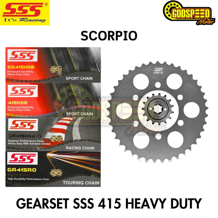 TERLARIS GEARSET SSS 415 BAJA UNTUK SCORPIO RANTAI SSS HSBT REGINA ORO GP4 GIRSET GIR SET GEAR SET SSS HSBT