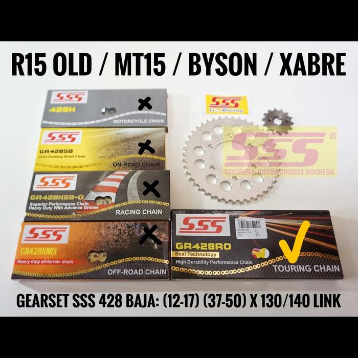 TERLARIS GEARSET SSS 428 R15BYSONXABRE RANTAI ROORING GIRSET GIR SET GEAR SET