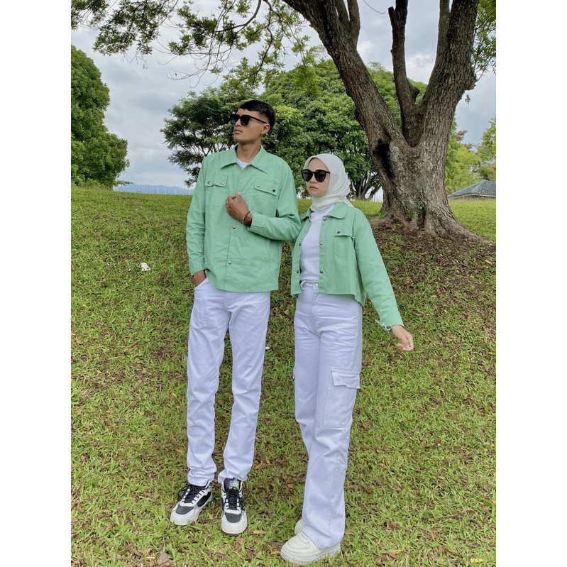 Himie Couple Set - Kemeja Kanvas Couple Sudah 2 Pcs - Baju Couple Pria Wanita Korean Style