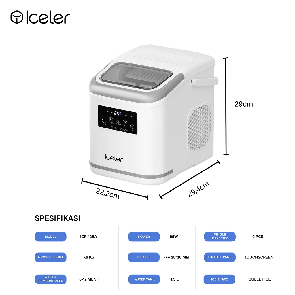 Iceler Mesin Es Digital Kontrol/ Touch Screen Setting Timer ON/OFF/Automatic Cleaning Home Ice Maker
