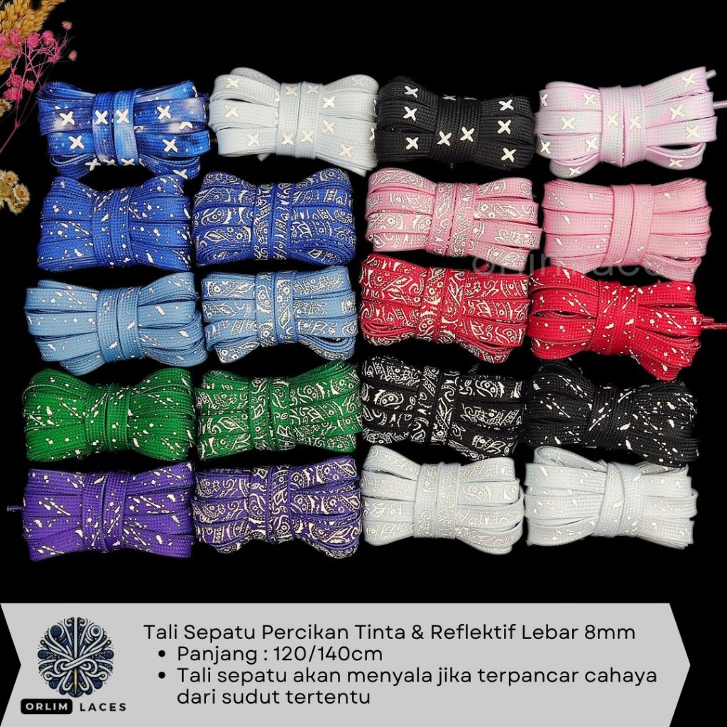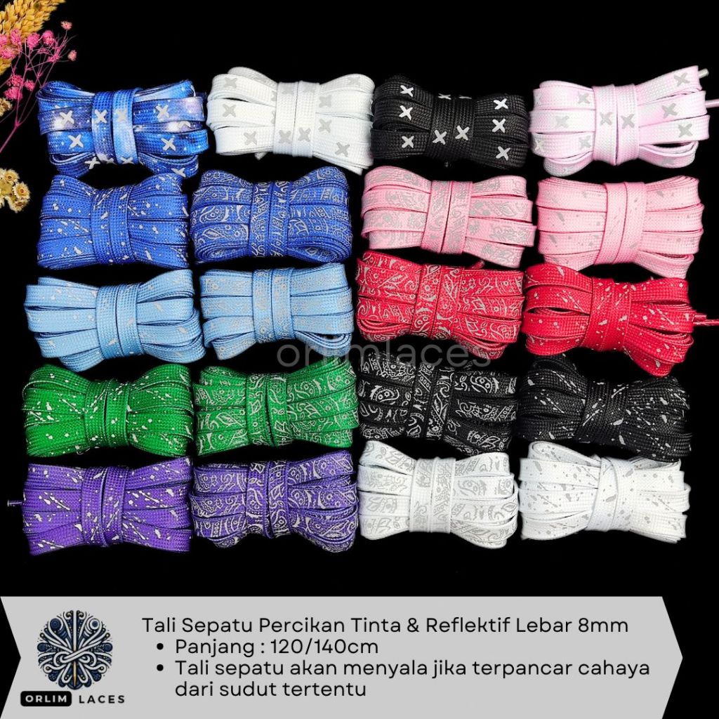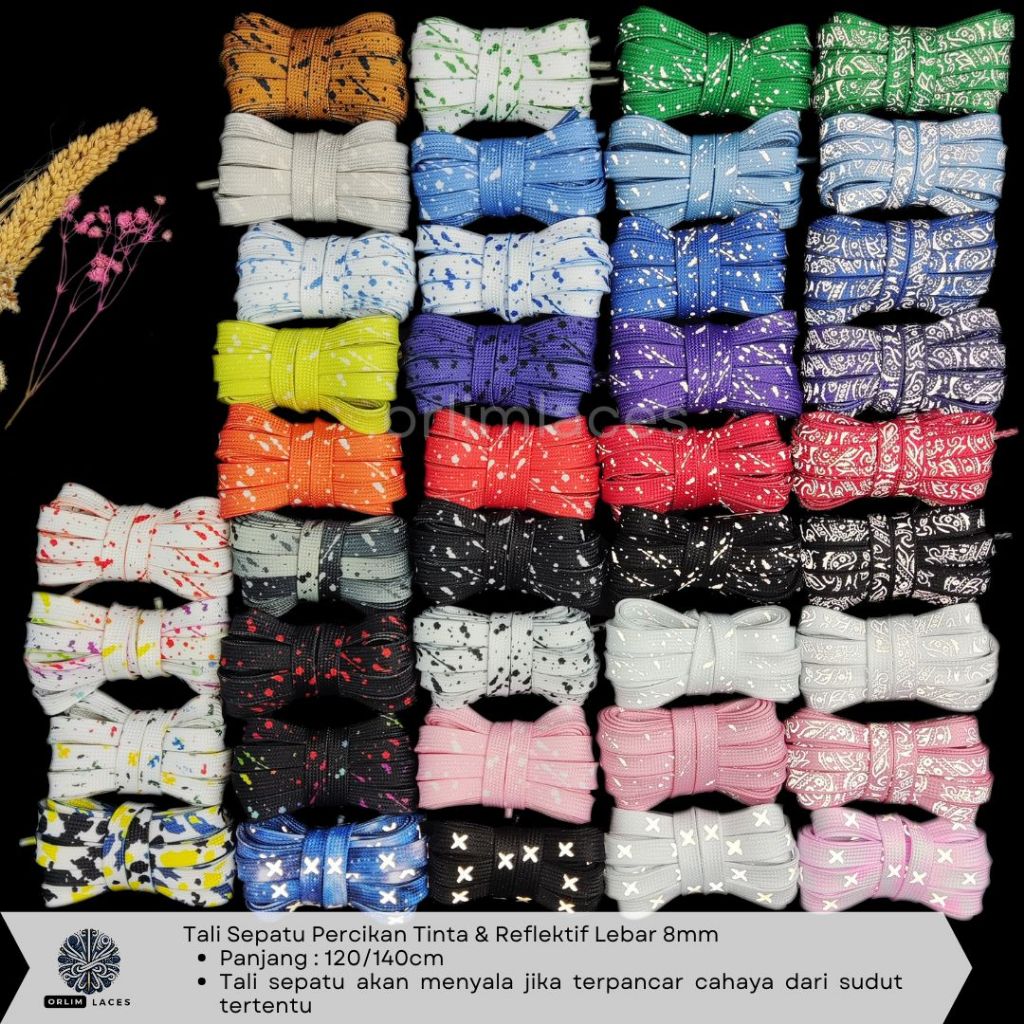 ORLIM LACES Tali Sepatu Warna Warni Reflective Mode X / Batik / Percikan Tinta Lebar 8mm