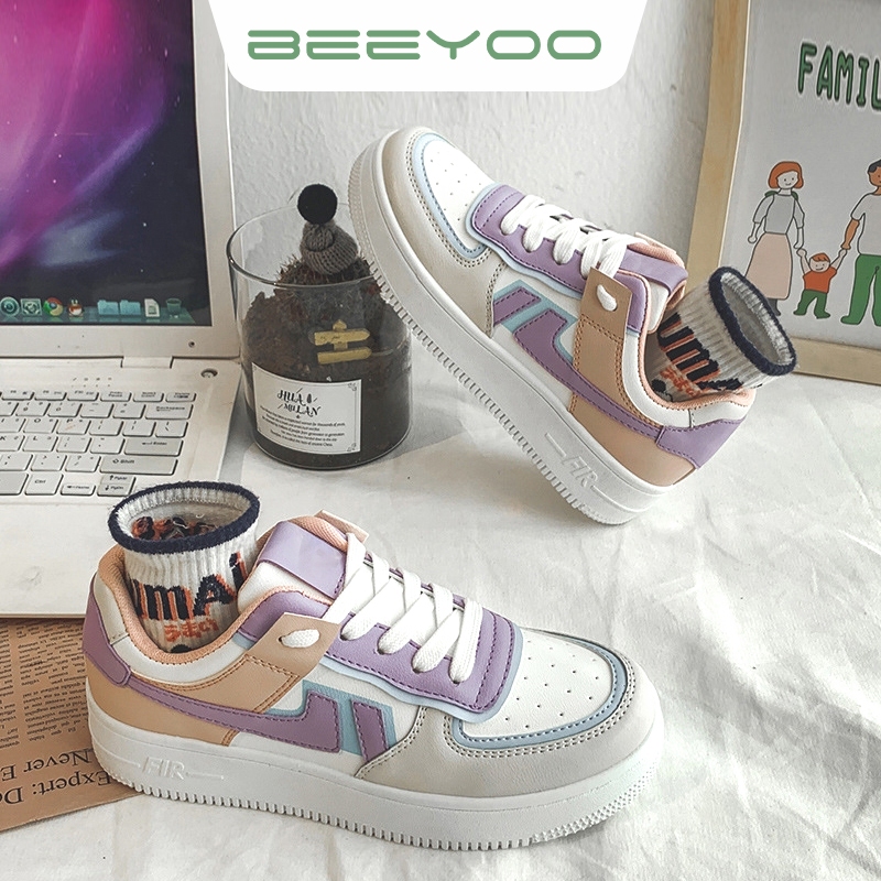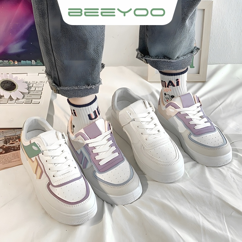 Beeyoo Sepatu Sneakers Wanita Fashion Korea Casual Sport Shoes Warna Pastel Kets Sepatu Pink WK116