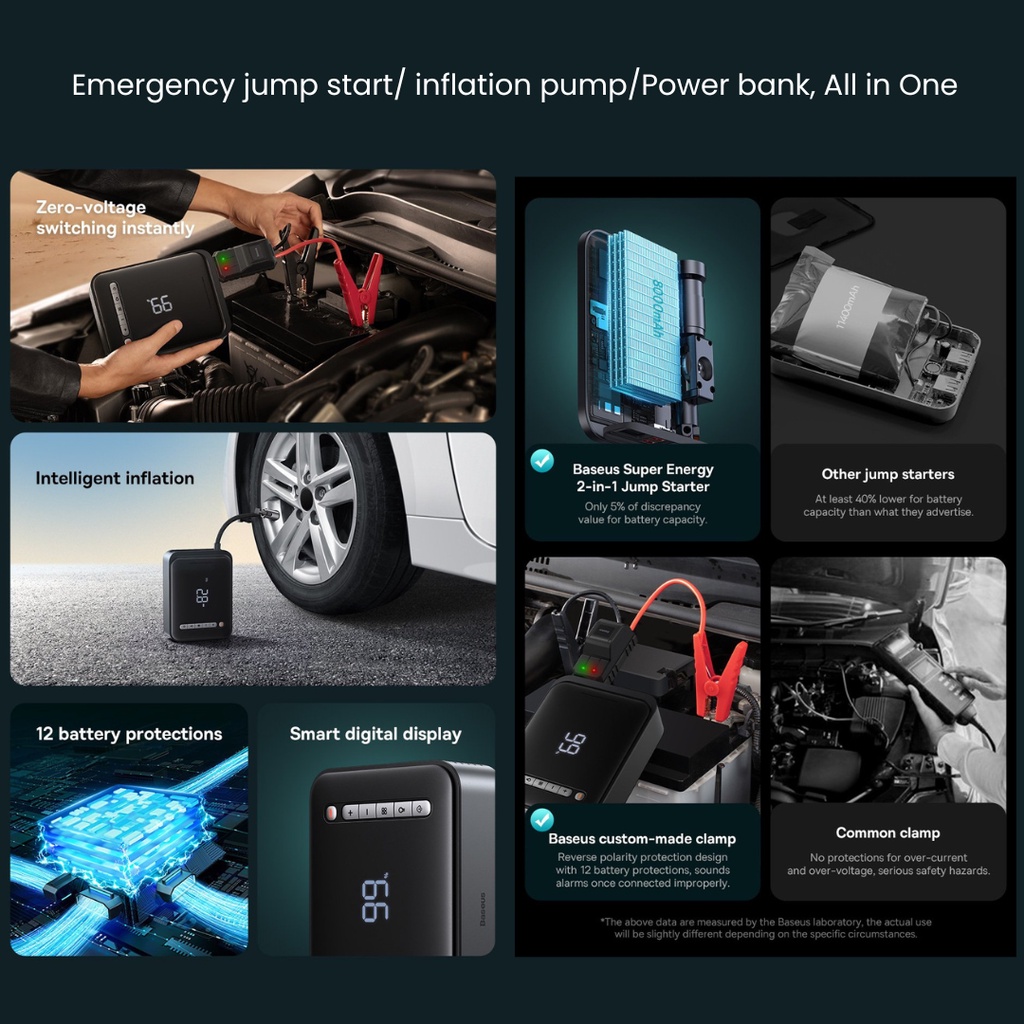 Baseus 1000A Portable Power Station 2 in 1 Car Jump Starter Powerbank Air Compressor Inflator Pump Car Battery Charger Booster - 8000 mAh