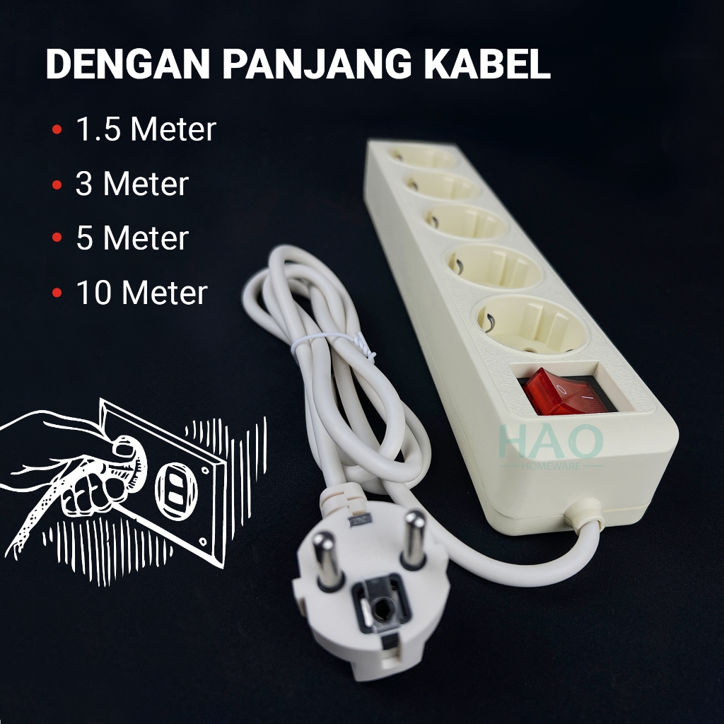STOP KONTAK + KABEL 2/3/4/5 LUBANG 1.5/3/5/10 M SNI Barang Lokal