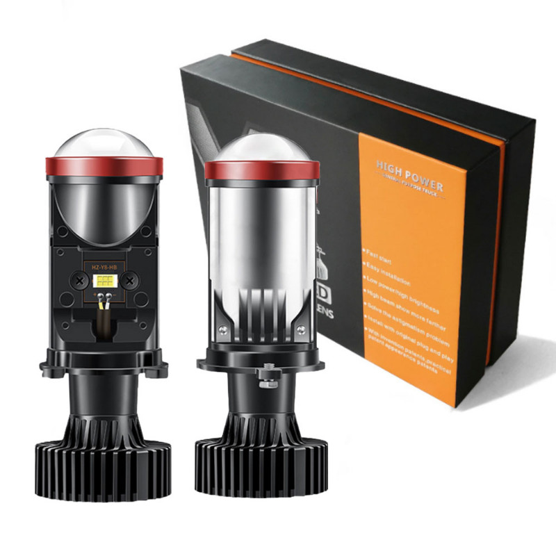 2PCS Y7D H4 Lampu Depan Mobil LED 100W Lensa Proyektor Mini H4 6000k 30000LM Lampu Mobil LED Otomatis Kipas Turbo Sinar