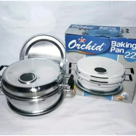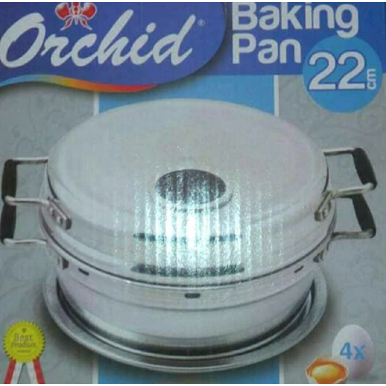 ENISOO STORE - Baking Pan Orchid Loyang Kue 22 cm 4 Telur Aluminium stainless Baking Pan 22cm