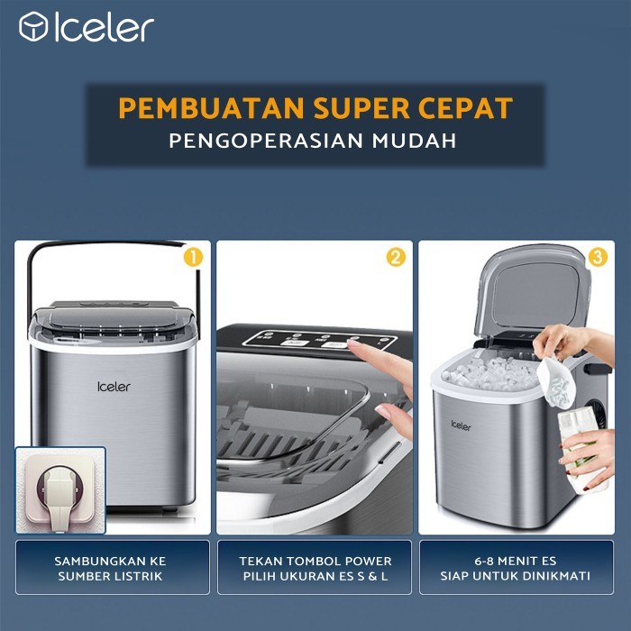 Iceler Mesin Es Portable Ice Maker 12 Kg per Hari dengan 2 Handle